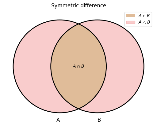 The symmetric difference of \(X\) and \(Y\), which is denoted by \(X \bigtriangleup Y\), is the set